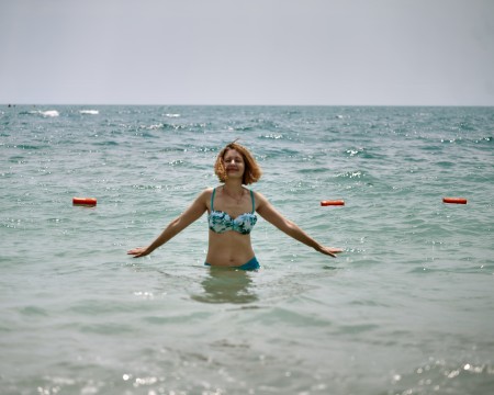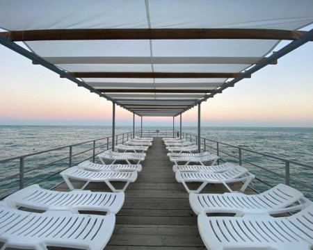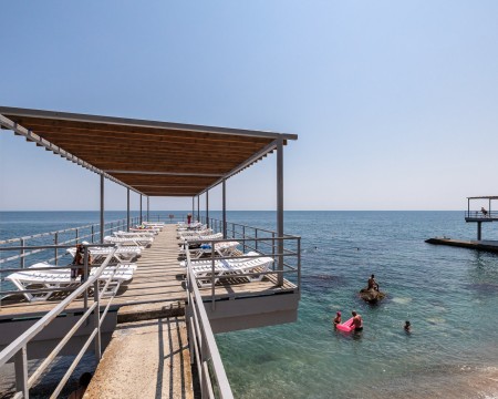 Для Вашего комфорта: зоны для переодевания, санузлы и душевые, закрытая охраняемая территория, шезлонги, теневые навесы.